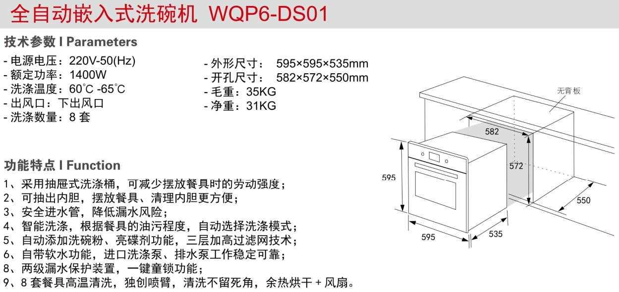 全自動嵌入式洗碗機WQP6-DS01