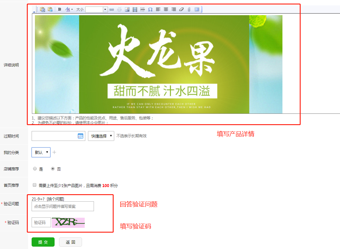 4.填寫對應的產品信息