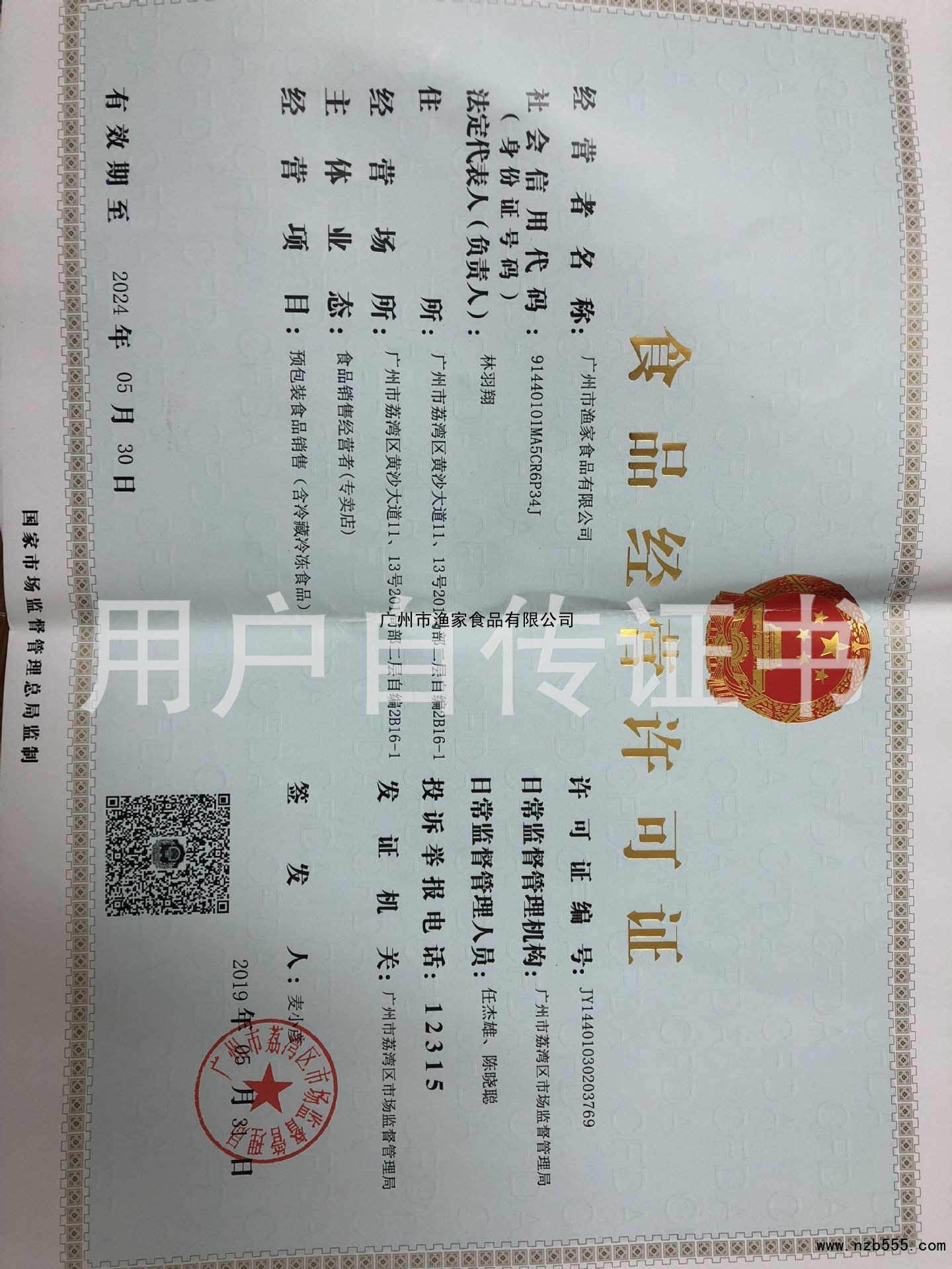| 發(fā)證機(jī)構(gòu): | 廣州市荔灣區(qū)市場監(jiān)督管理局 | 發(fā)證時間 : | 2019-05-31 |