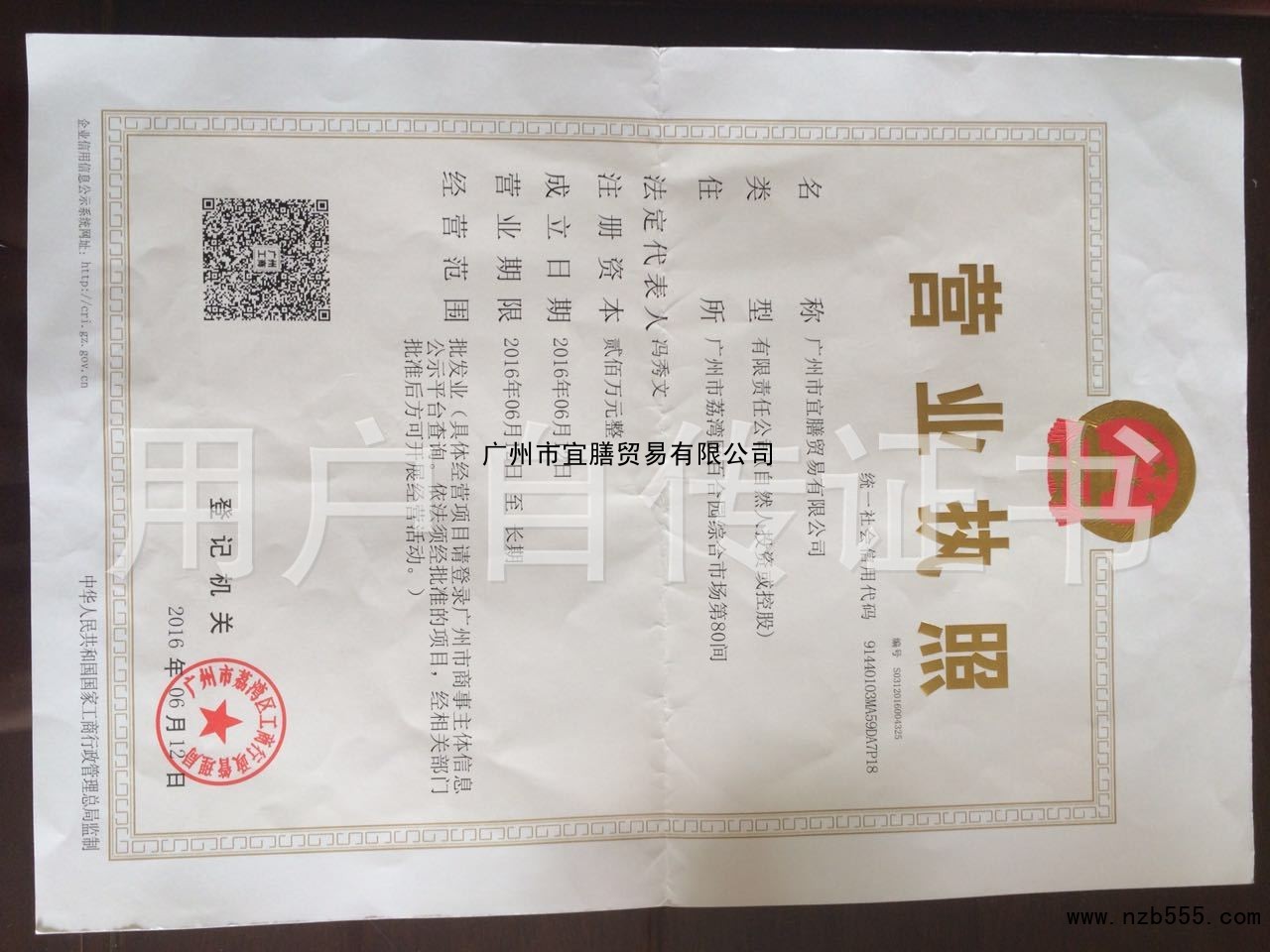 | 發(fā)證機(jī)構(gòu): | 廣州市荔灣區(qū)工商行政管理局 | 發(fā)證時(shí)間 : | 2016-06-12 |