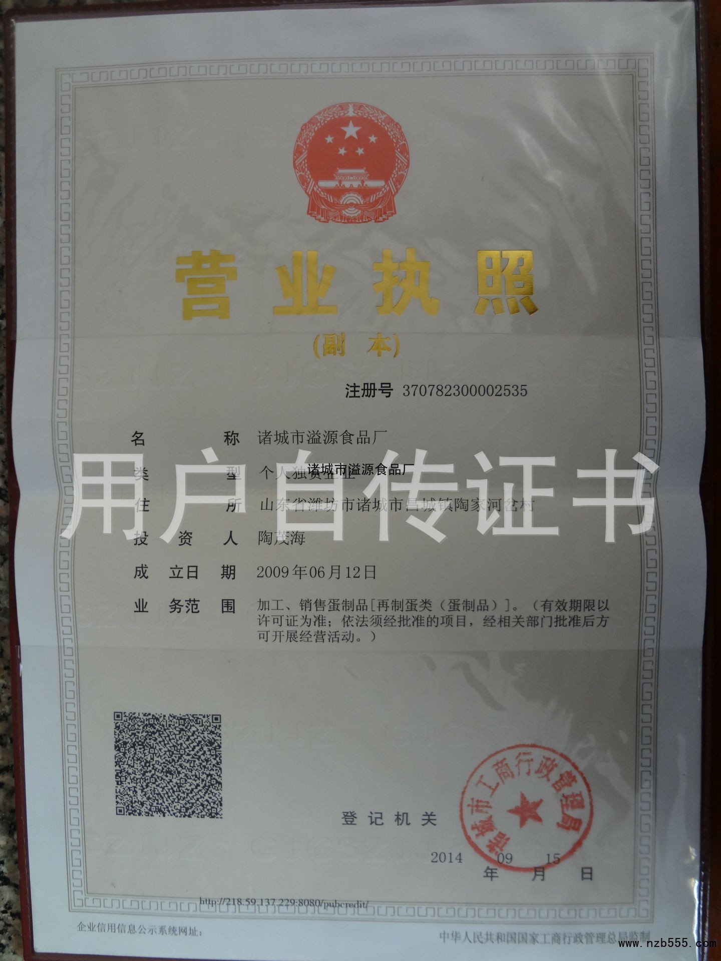 | 發(fā)證機(jī)構(gòu): | 諸城市工商行政管理局 | 發(fā)證時(shí)間 : | 2014-09-15 |