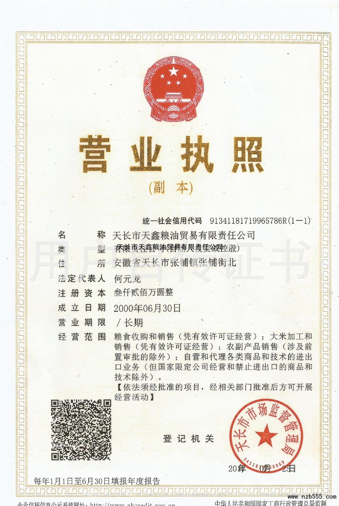 天長市天鑫糧油貿(mào)易有限責(zé)任公司