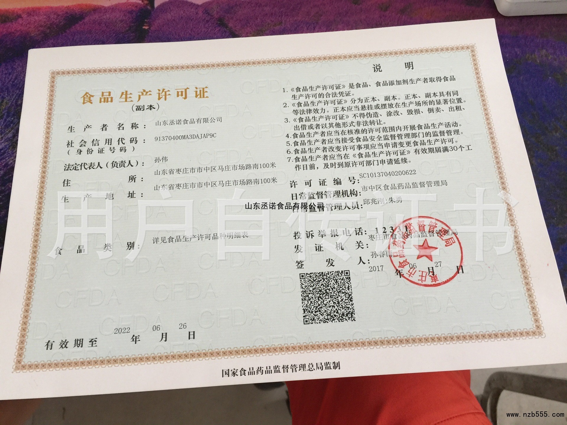 榮譽(yù)資質(zhì) 山東丞諾食品有限公司