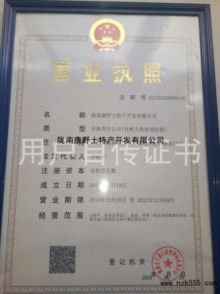 | 發(fā)證機(jī)構(gòu): | 隴南市工商行政管理局武威分區(qū) | 發(fā)證時(shí)間 : | 2016-05-29 |