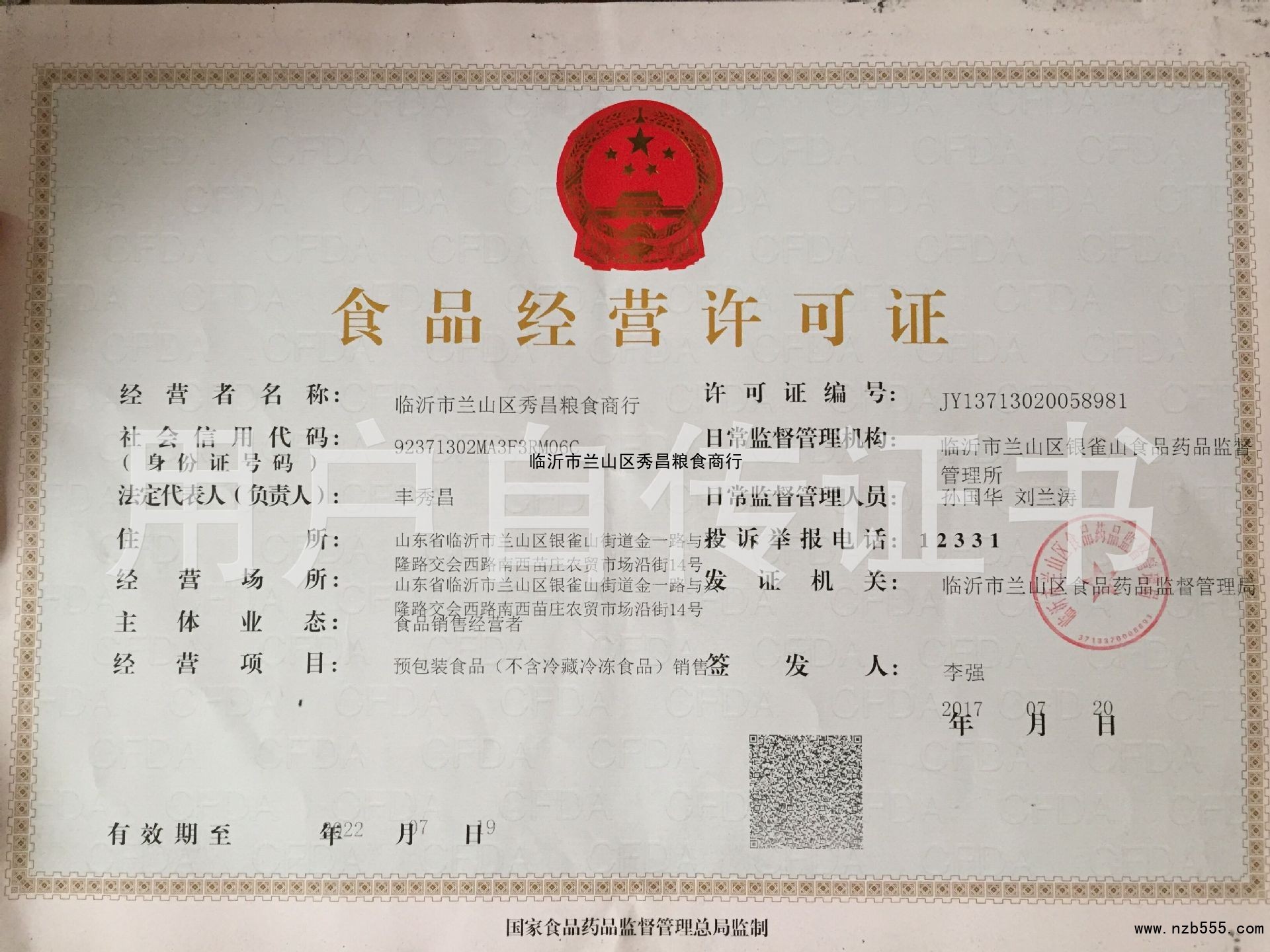 食品流通許可證(除乳制品、嬰幼兒配方乳粉、酒之外的流通許可證)
