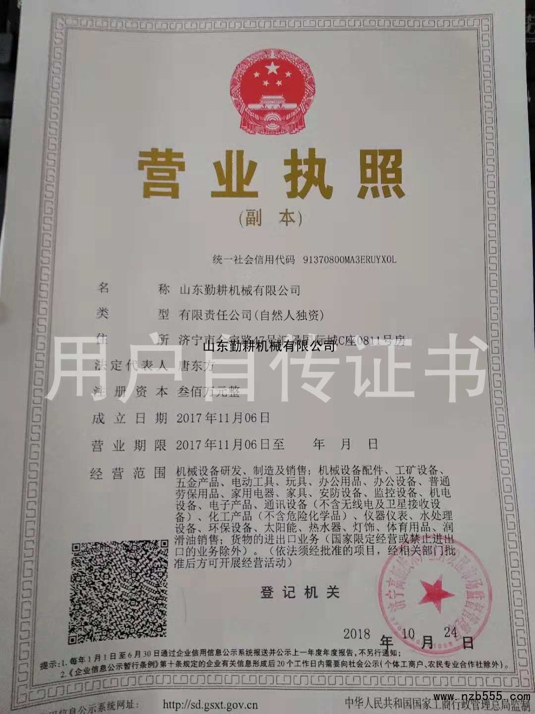 榮譽(yù)資質(zhì) 山東勤耕機(jī)械有限公司