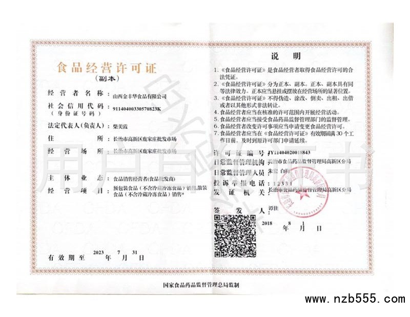 首頁(yè) > 榮譽(yù)資質(zhì) > 食品經(jīng)營(yíng)許可證