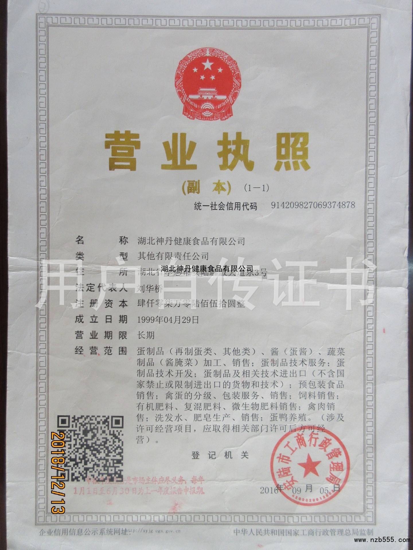 | 發(fā)證機(jī)構(gòu): | 安陸市工商行政管理局 | 發(fā)證時(shí)間 : | 2016-09-05 |