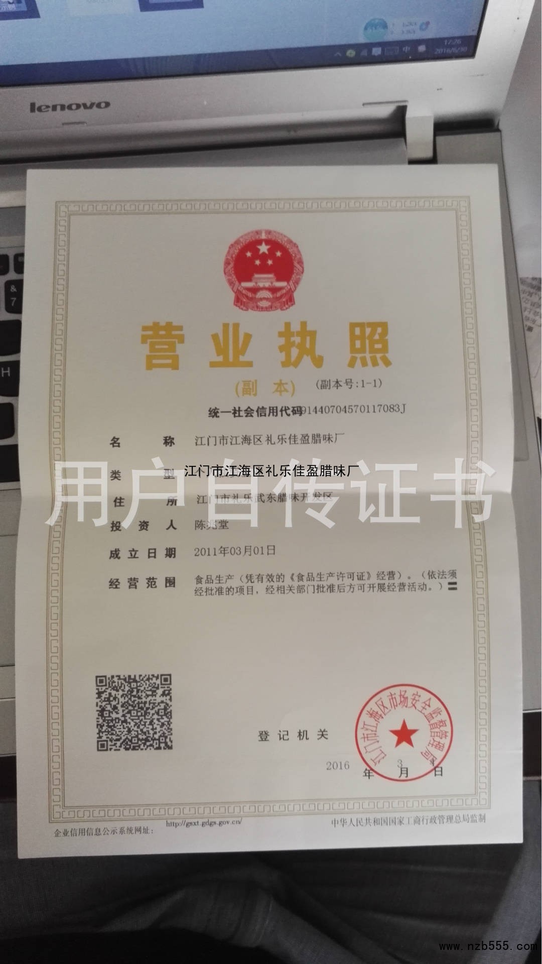 | 發(fā)證機(jī)構(gòu): | 江門市江海區(qū)市場(chǎng)安全監(jiān)督管理局 | 發(fā)證時(shí)間 : | 2016-03-04 |