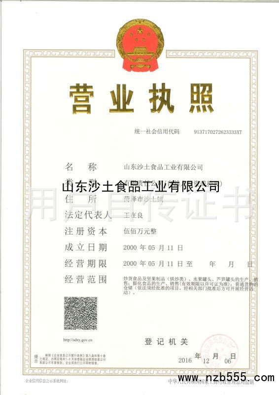 榮譽(yù)資質(zhì) 山東沙土食品工業(yè)有限公司