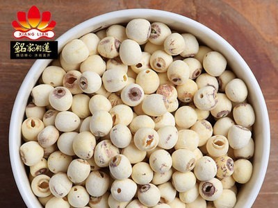 過塞 磨蓮子顆粒近圓柱形,表面光滑,乳白色,胚芽端及柱面留有紫褐色環(huán)和色斑,色澤基本一致,有蓮子固有的清香,無異味
