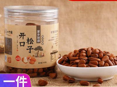 臨安廠家堅果炒貨 批發(fā) 東北大顆粒開口松子250g罐裝毛重東北松子 2桶起批