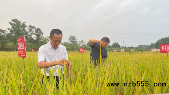 今年合江縣水稻展示示范基地展示水稻品種46個(gè),農(nóng)技人員、鄉(xiāng)賢種植大戶、村民深入到田間地頭,對水稻新品種進(jìn)行考察,了解長勢長相、抗倒性等情況。